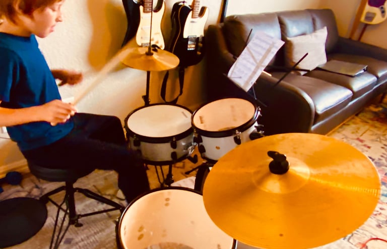 Drum students will learn fundamentals and rudiments on the snare in parallel with drum set basics. They will learn to play for the needs of the song and members of the band to help everyone sound their best.